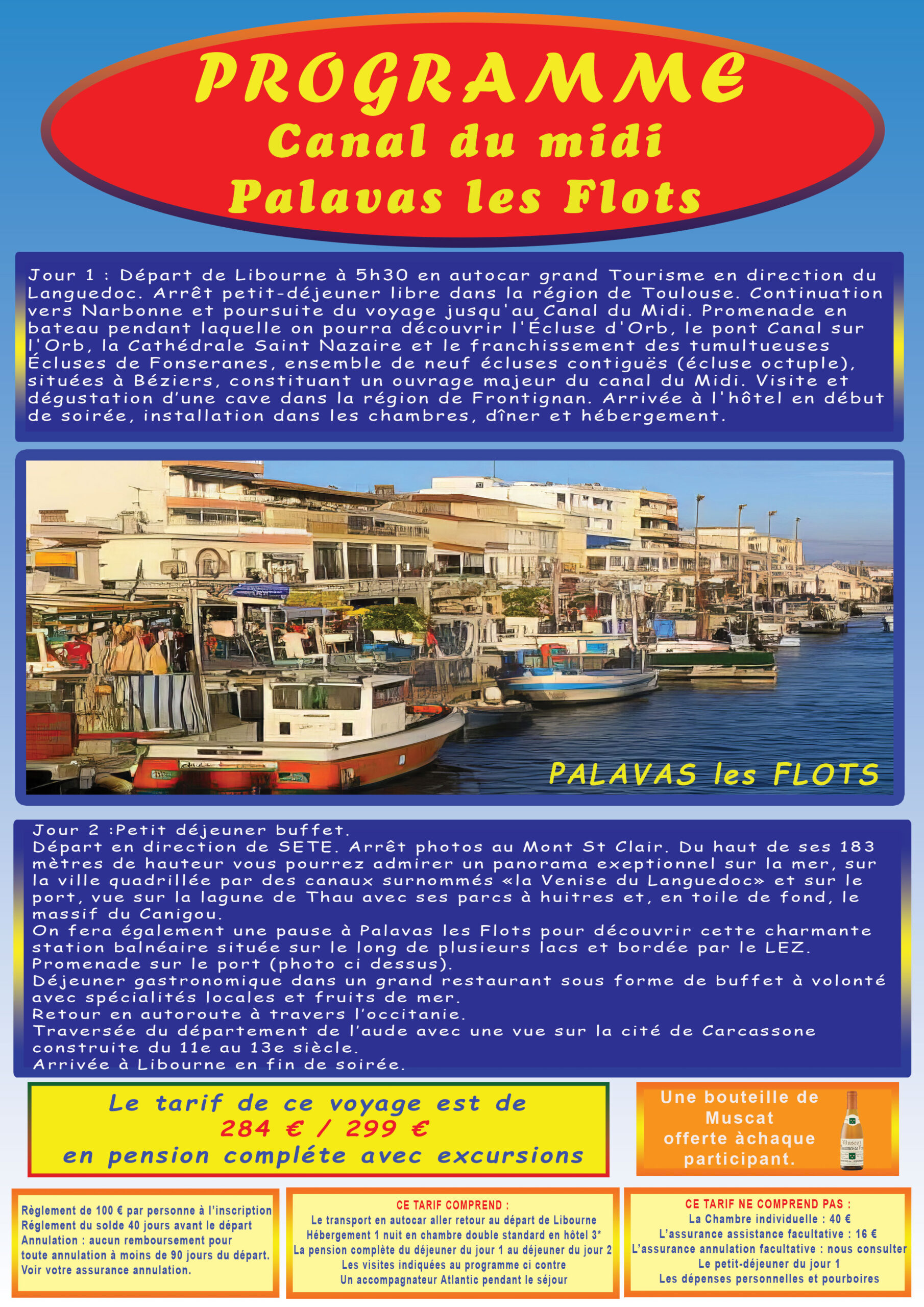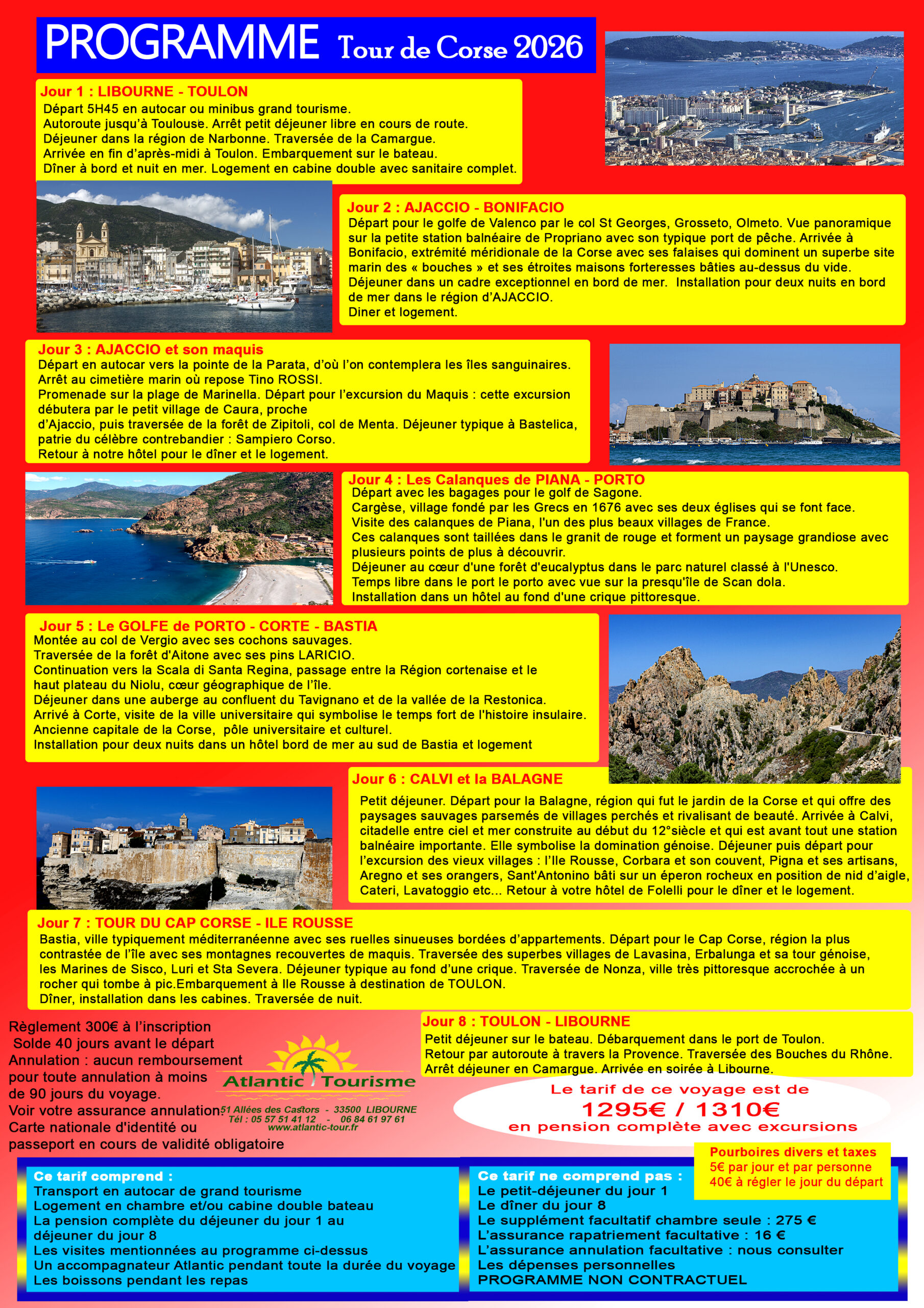 345€/360€ (sans excursions). Départ : 5h30. Règlement 100€ à l’inscription.