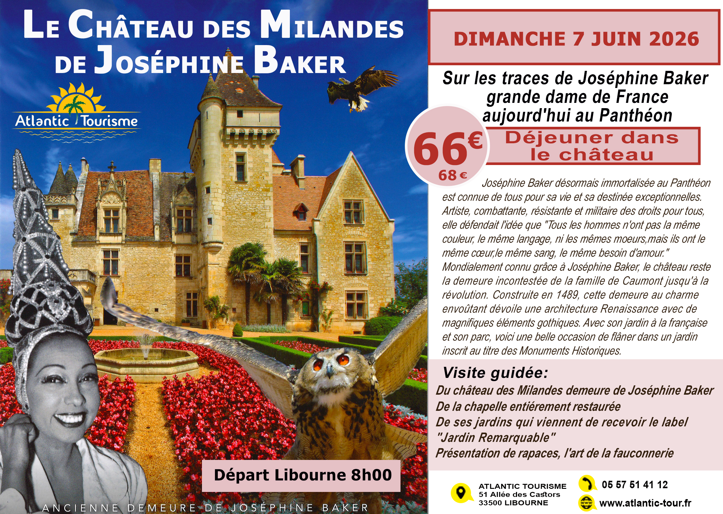 72€/74€. Départ : 8h45. Transport, visites, déjeuner et spectacle compris.