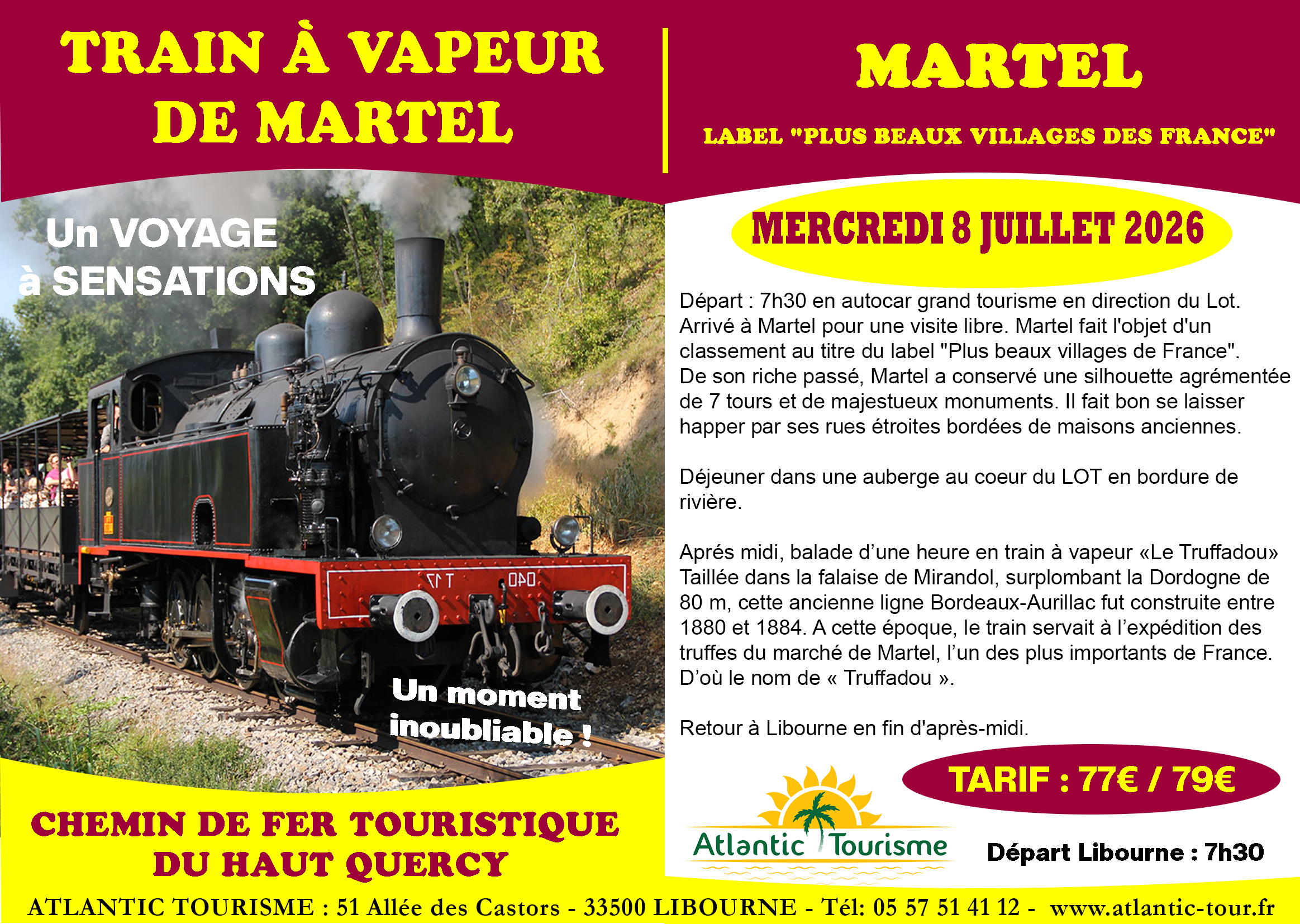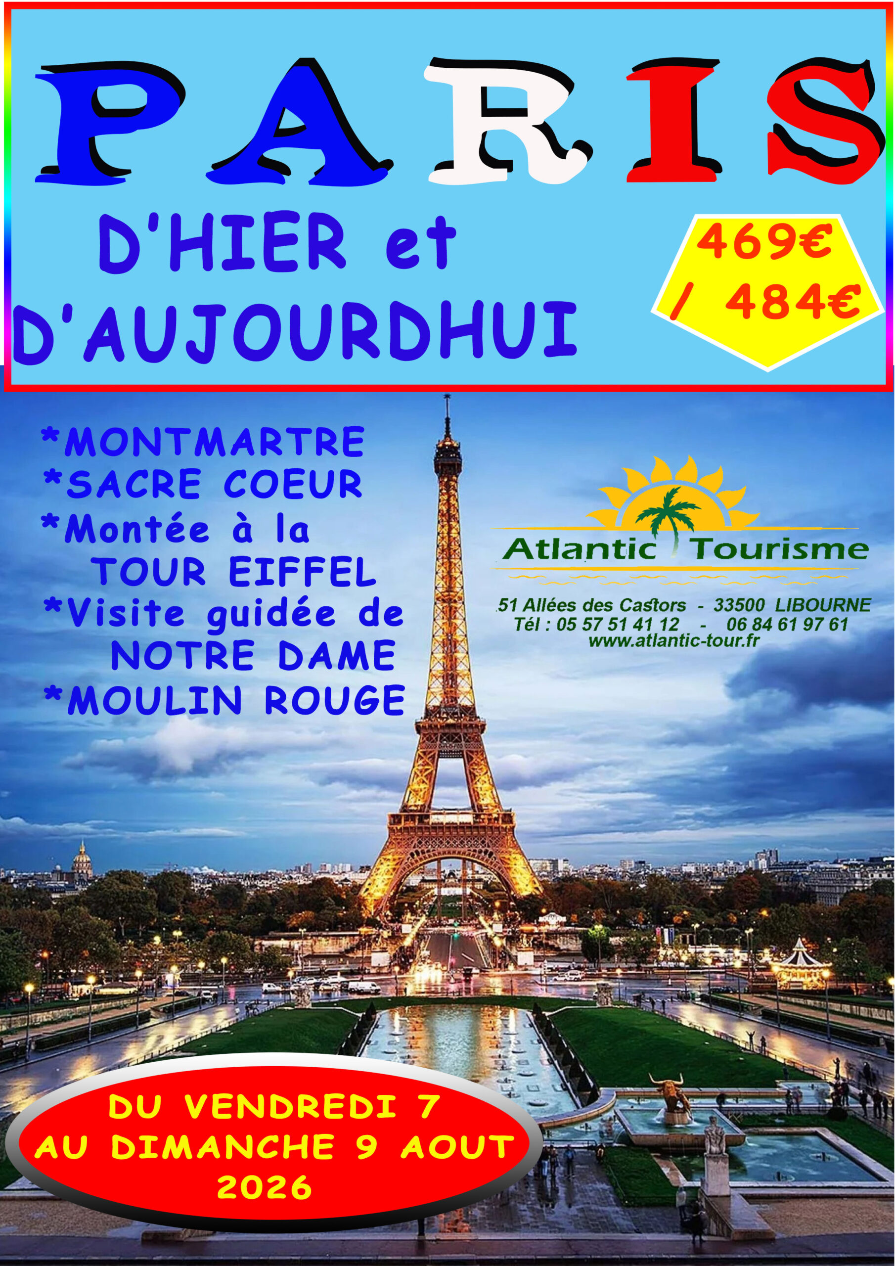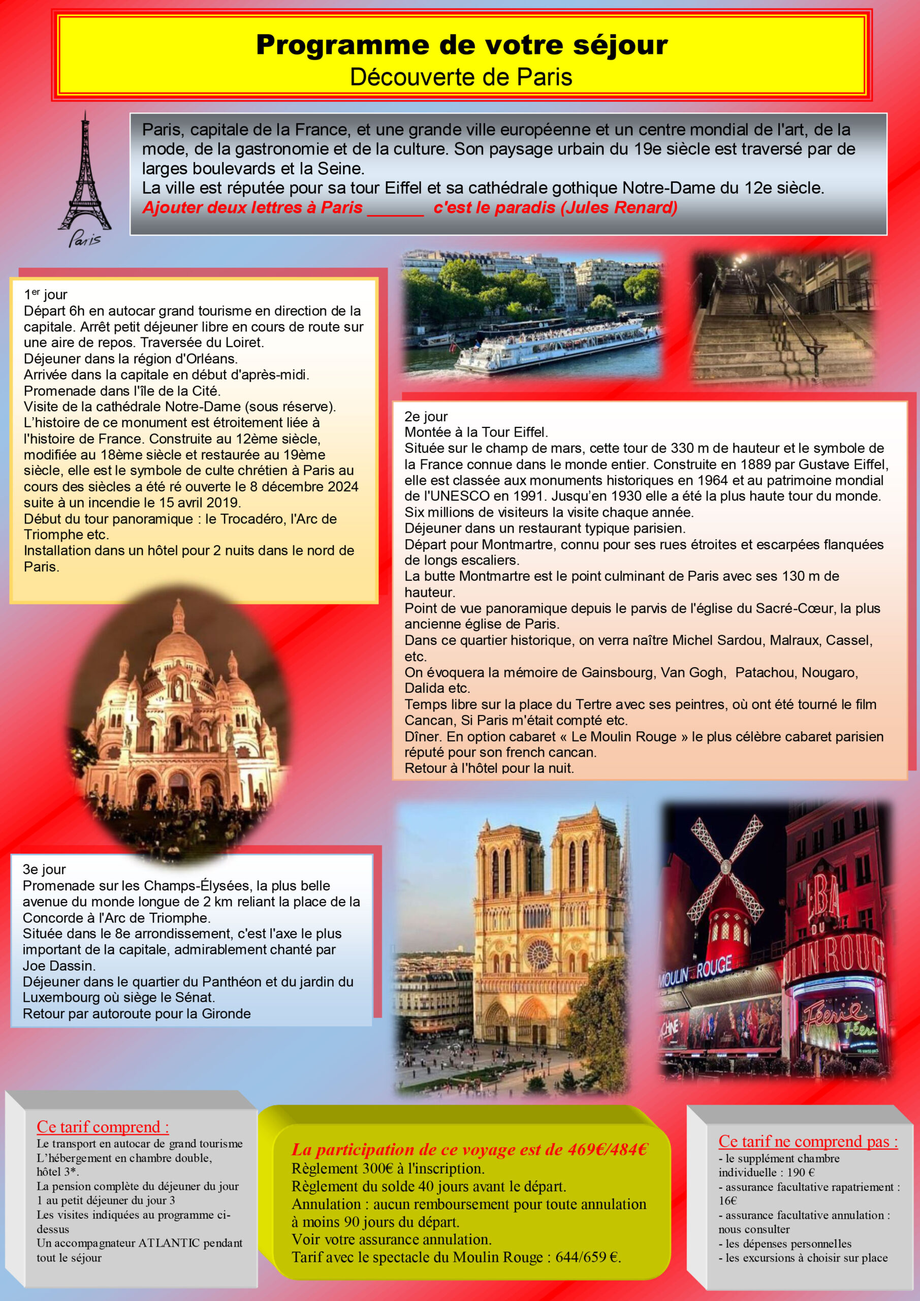 469€/474€. Départ : 5h45. Règlement 200€ à l’inscription. PLACES LIMITEES