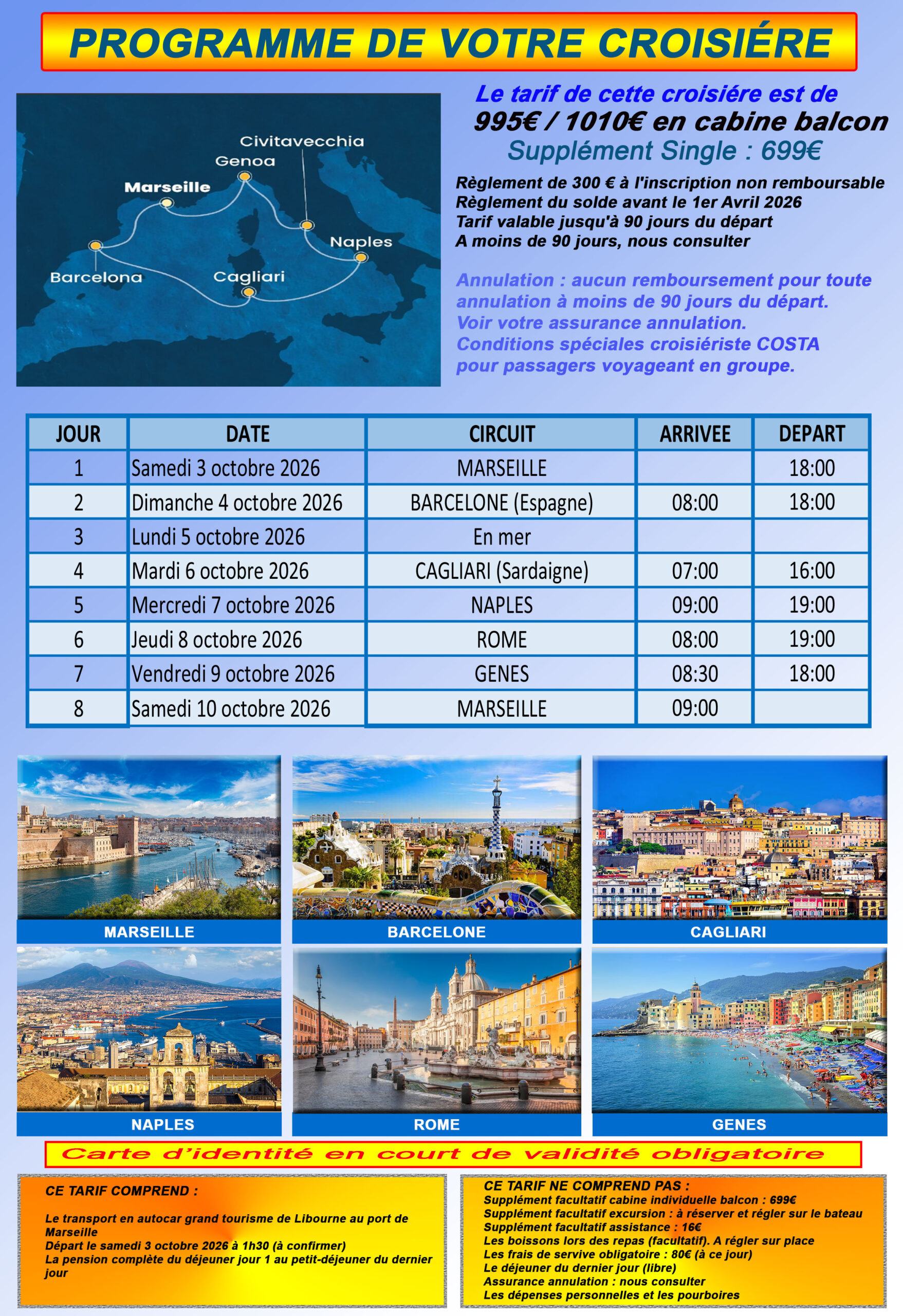 Du SAMEDI 3 au SAMEDI 10 OCT : CROISIERE COSTA en MEDITERRANEE