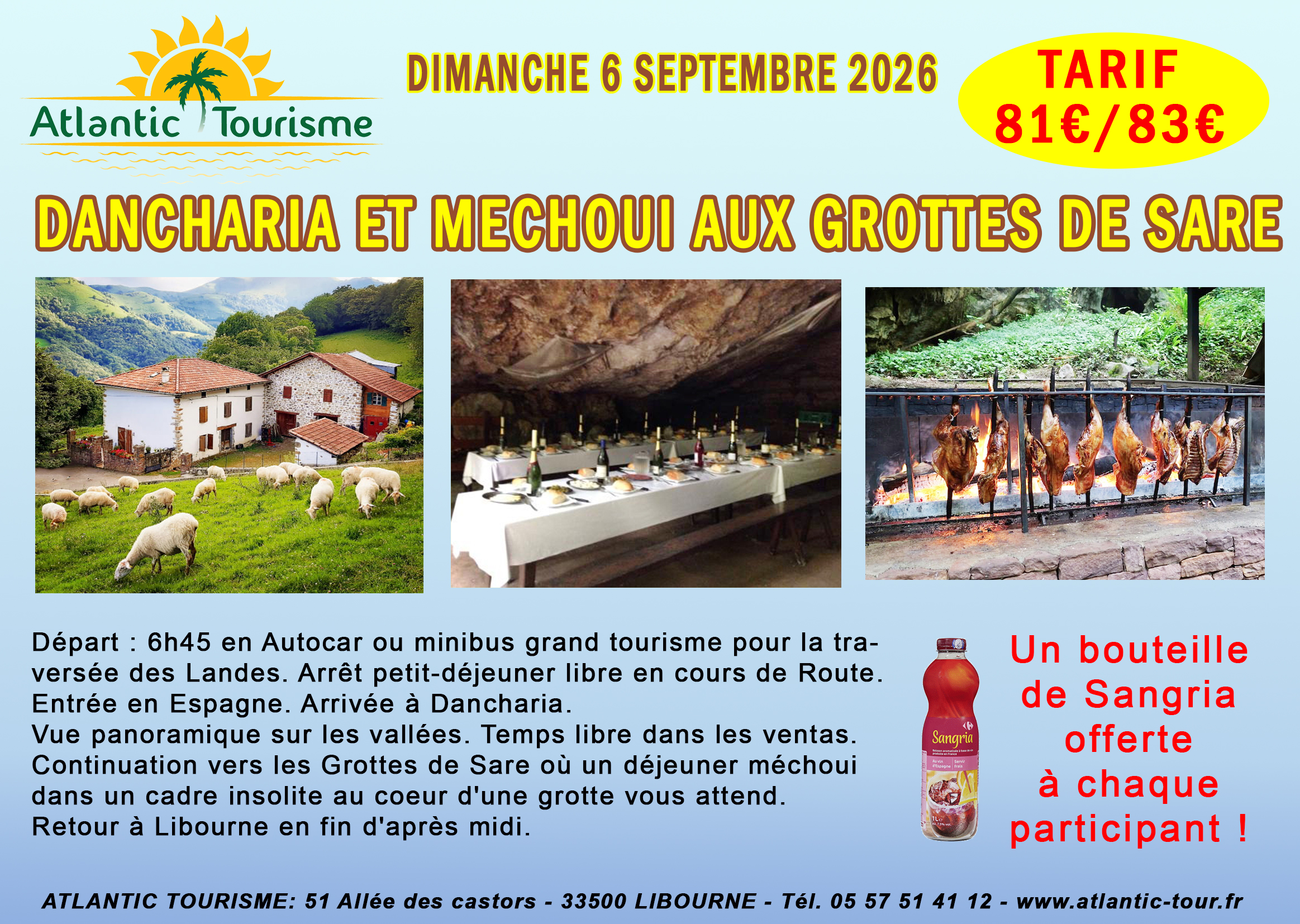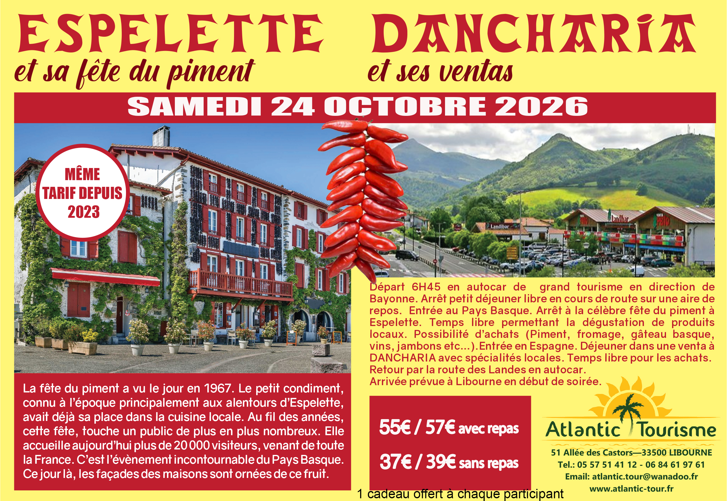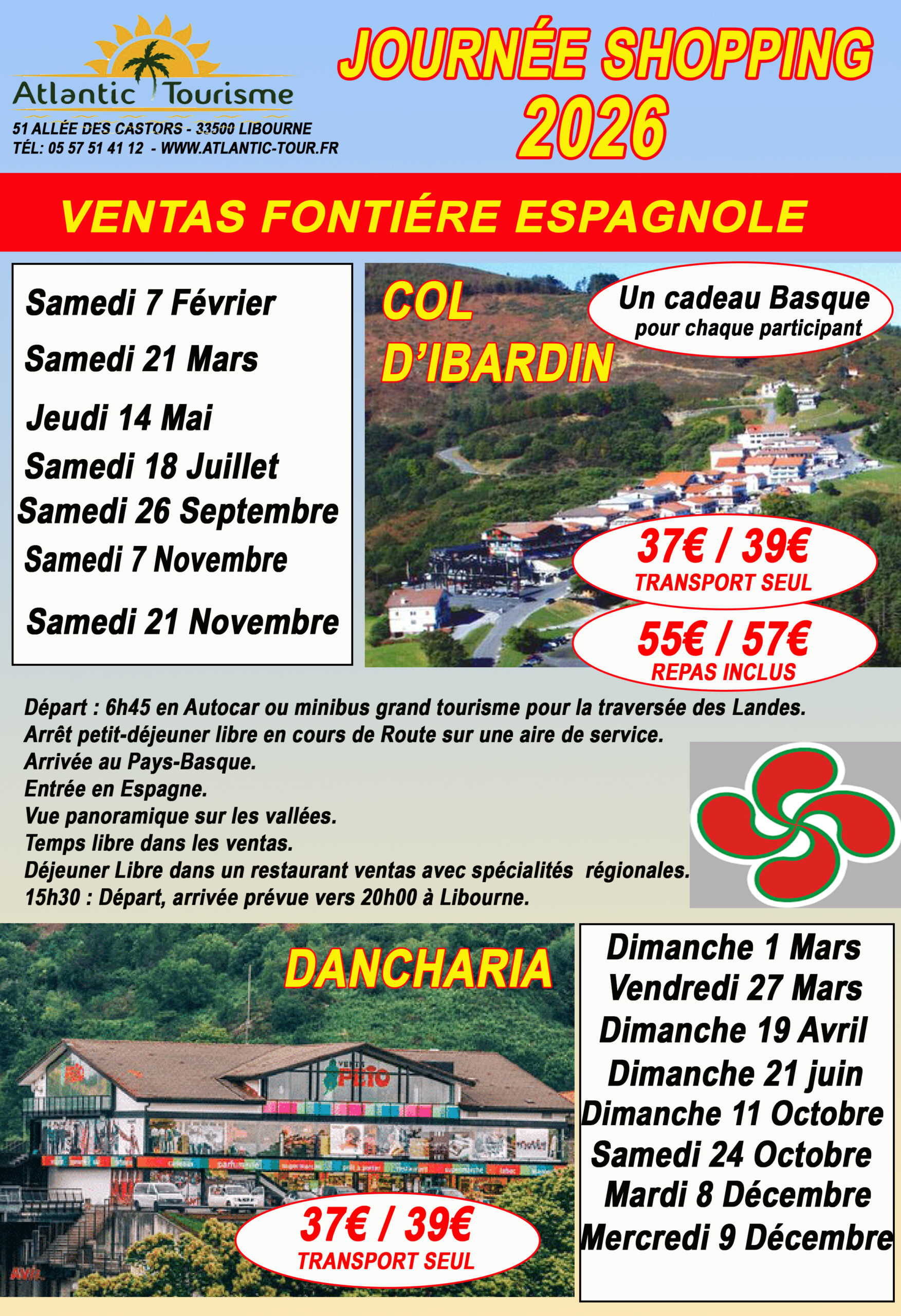37€/39€. Transport seul. Déjeuner libre. Départ 6h45 pour le Pays basque.