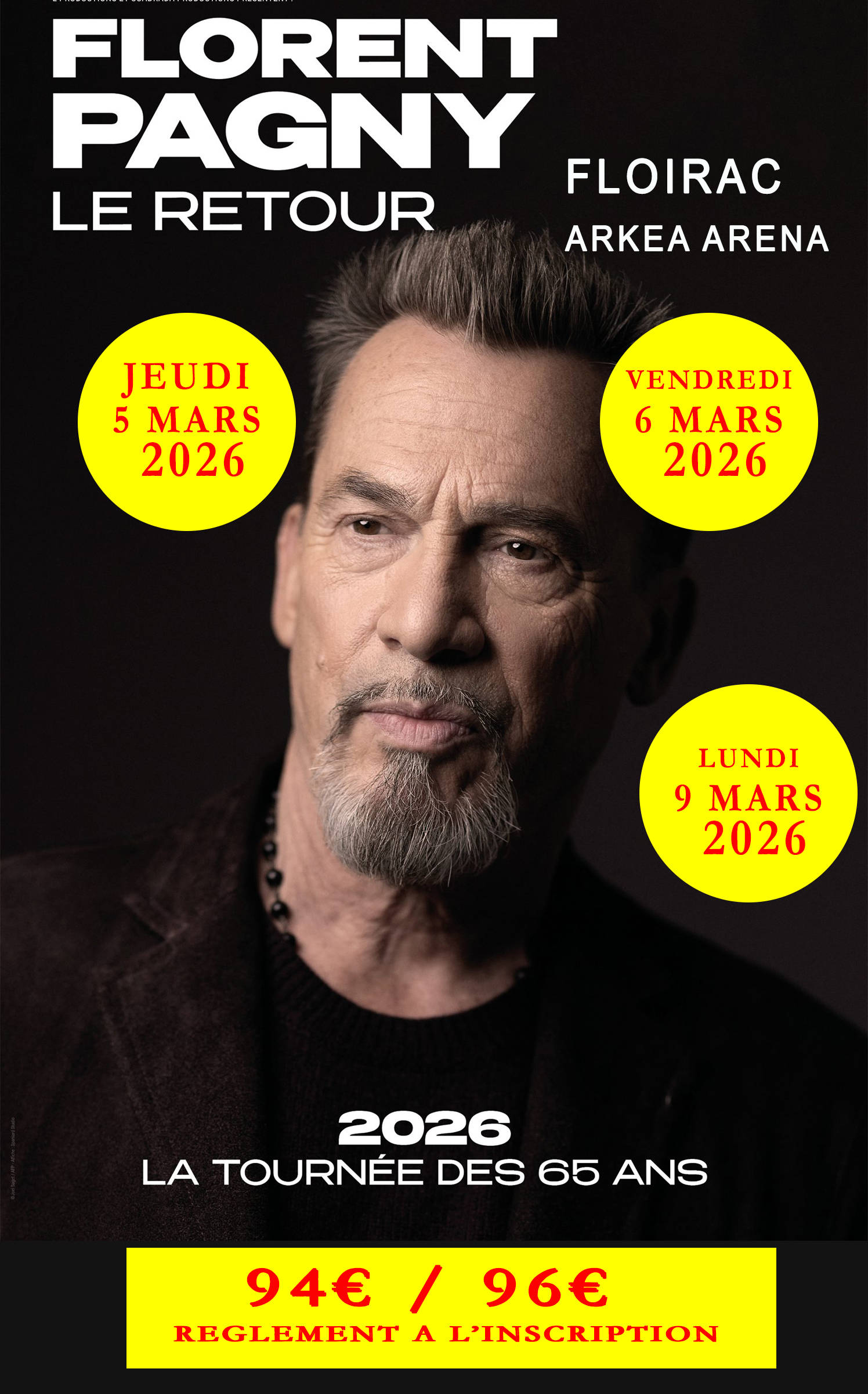 JEUDI 5 MARS : CONCERT : FLORENT PAGNY à l’ARENA de Bordeaux.