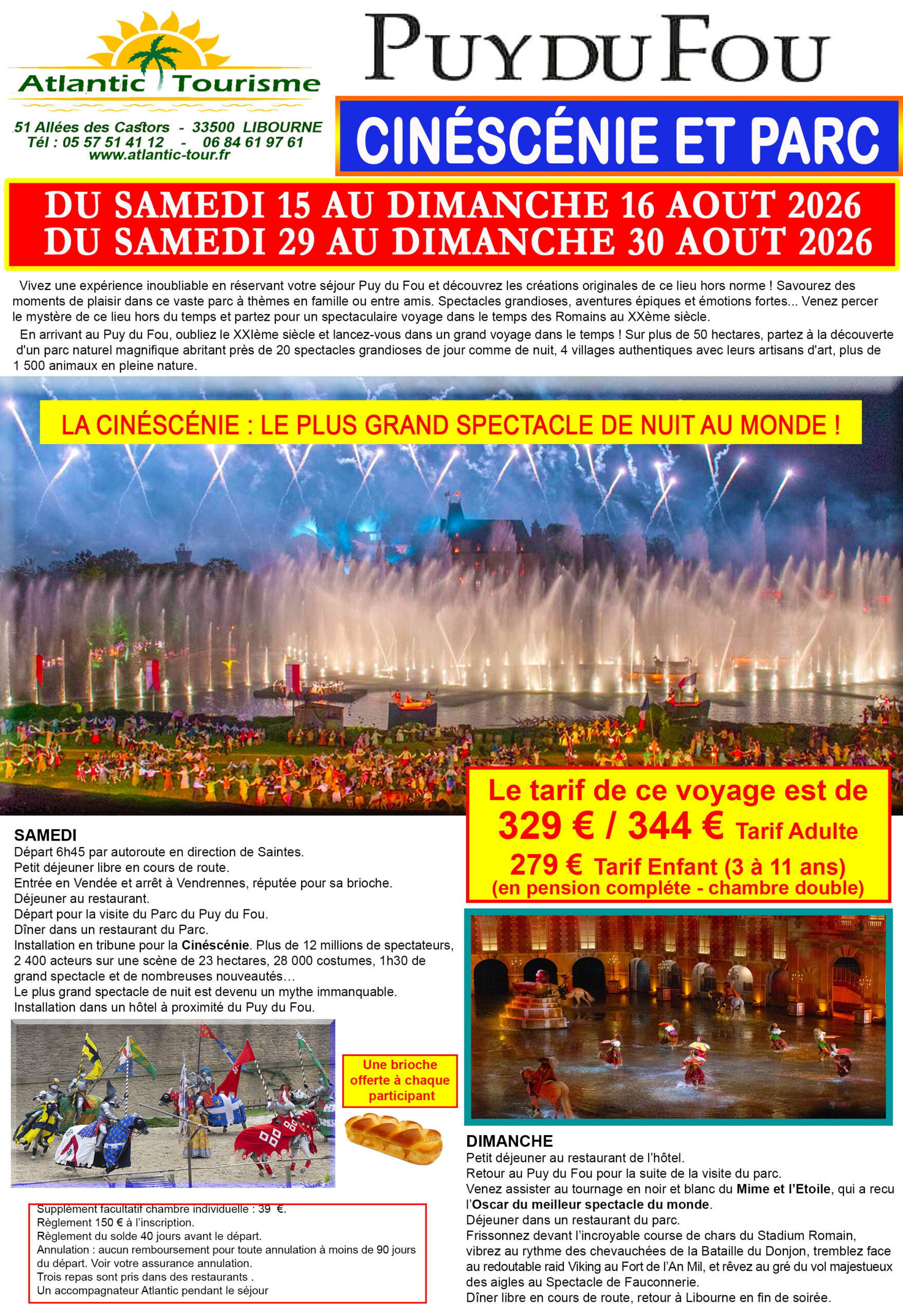 285€/300€. Départ : 7h. Logement hôtel 2* proche du parc. Les NUITS DE FEUX INCLUSES