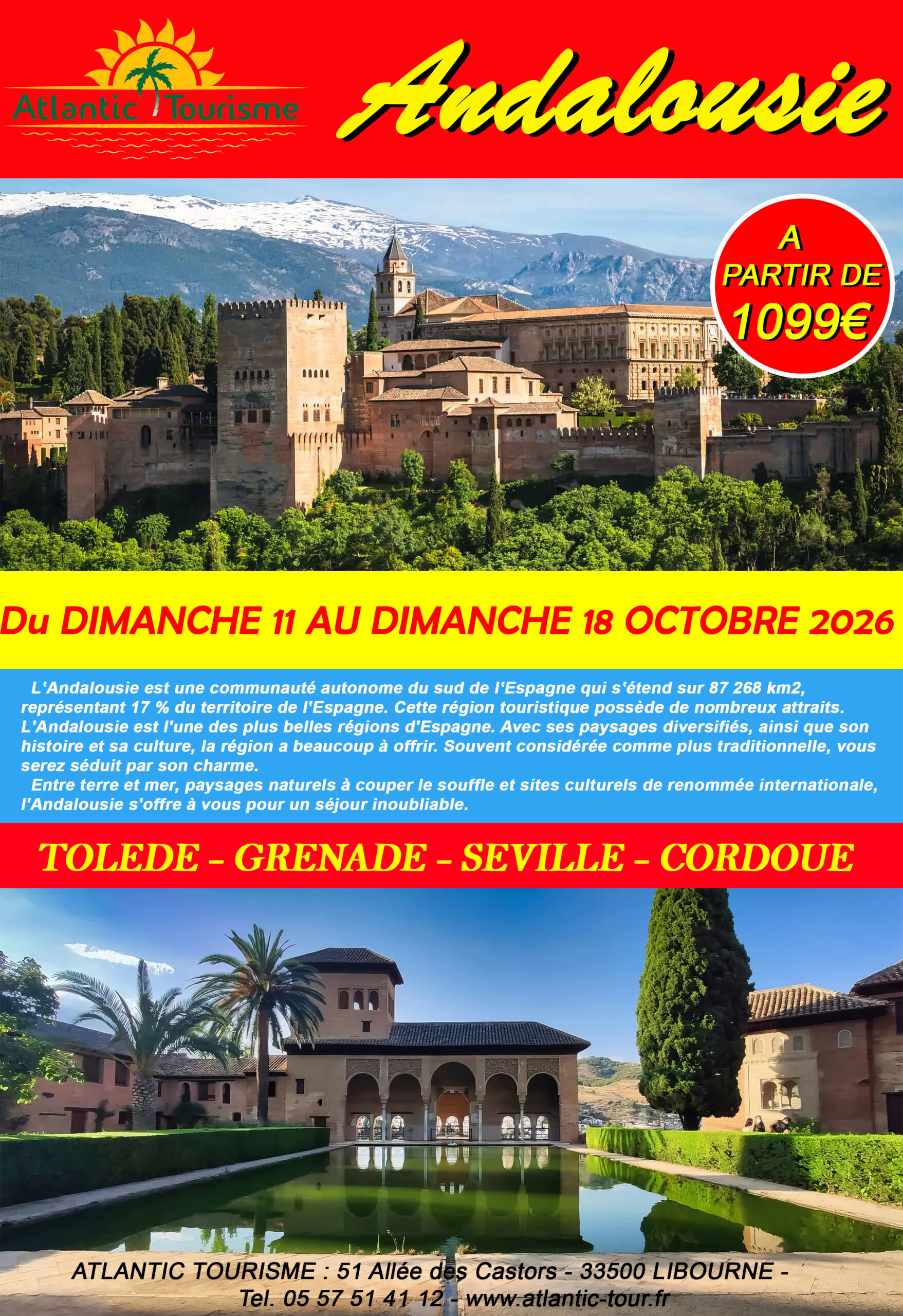 Du DIMANCHE 11 au DIM 18 OCTOBRE : L’ANDALOUSIE et ses Merveilles