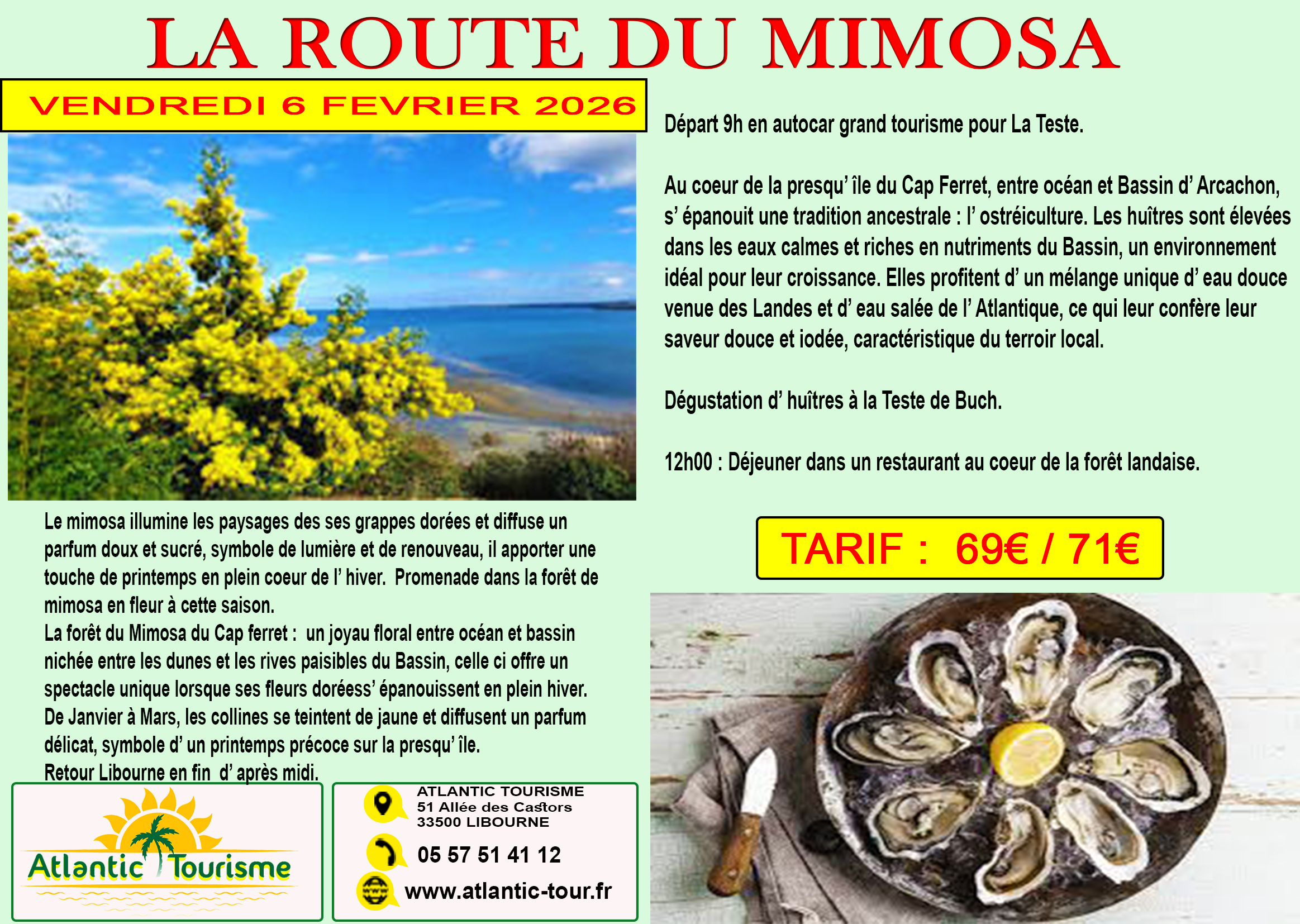 VENDREDI 6 FEVRIER : LA ROUTE DU MIMOSA au CAP FERRET avec huitres…