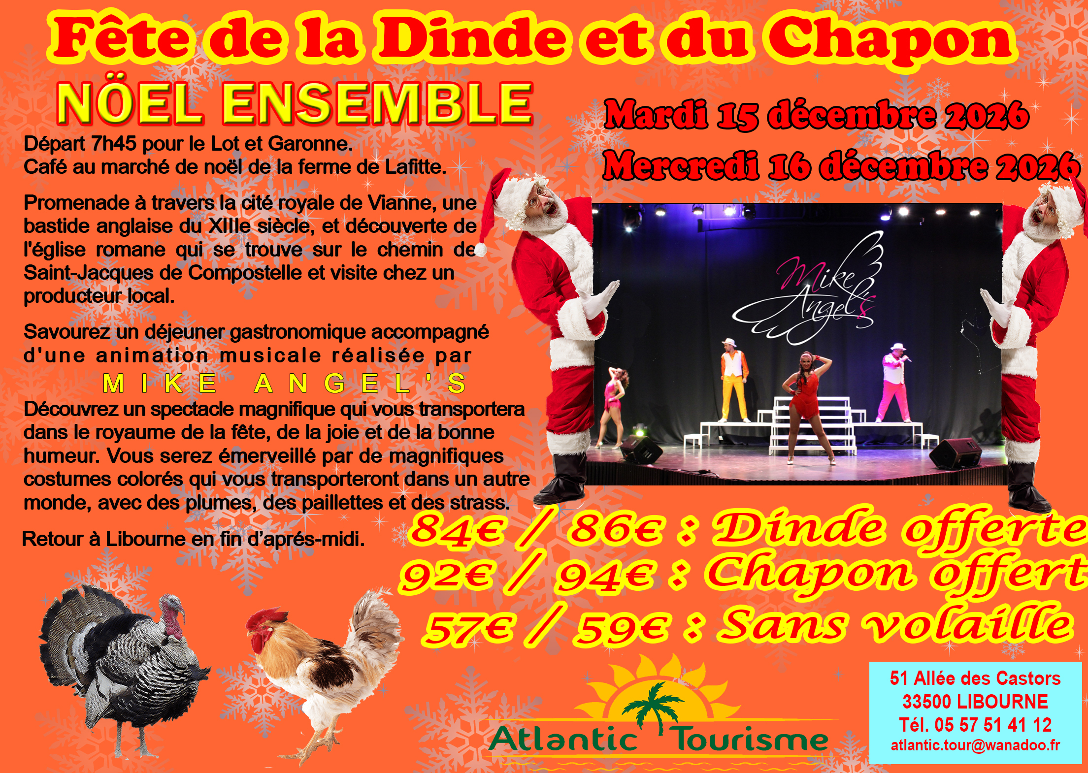 88€/90€. Départ :19h30. Une coupe de champagne offert par ATLANTIC à tous les participants !