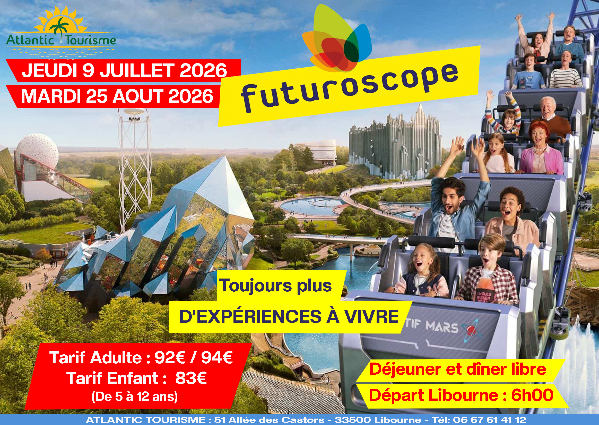 479€/ 494€. Départ : 5h45. Journée libre sur le plus grand parc d’attractions de France.