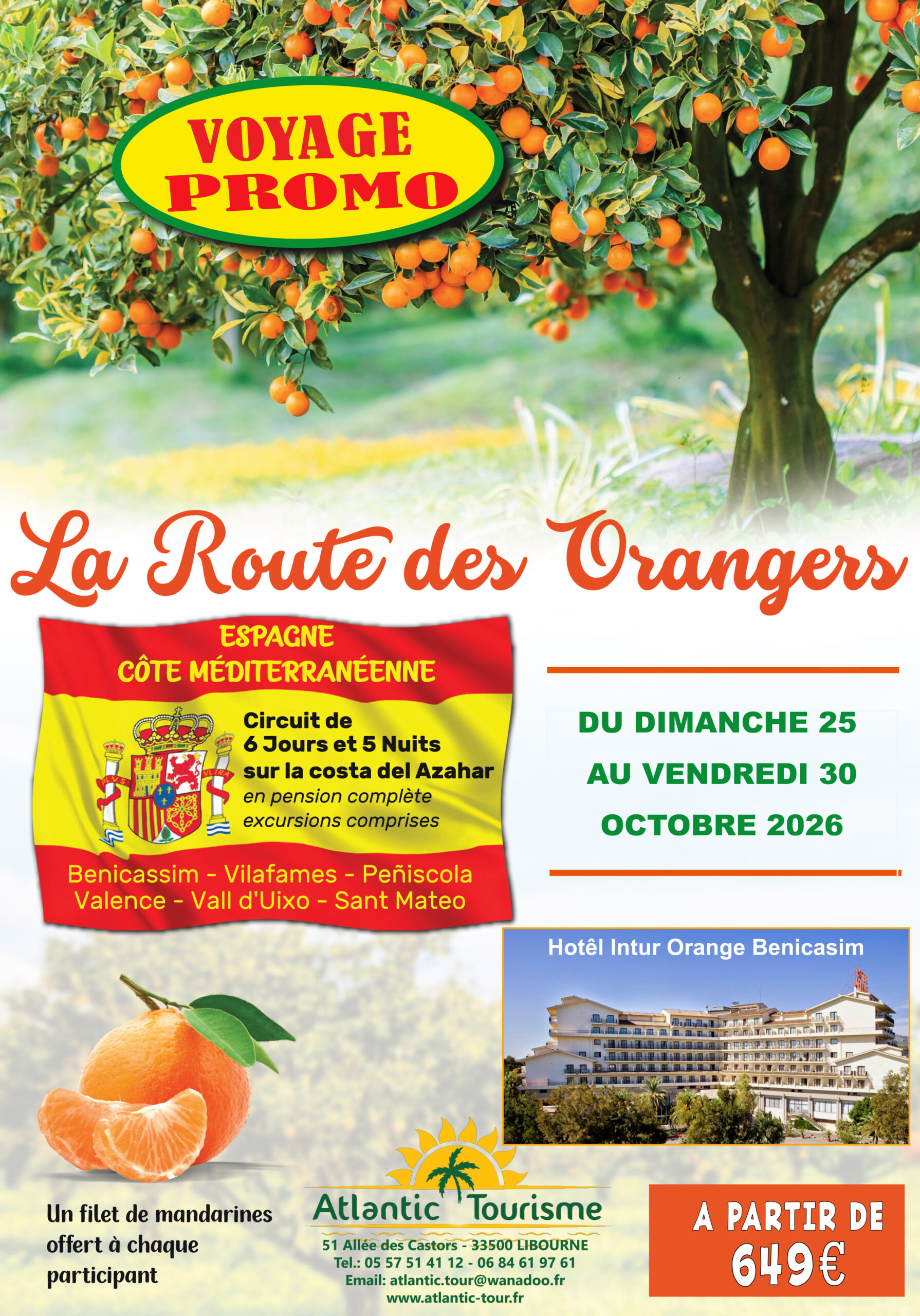 Du DIMANCHE 25 au VEN 30 OCTOBRE : LA ROUTE DES ORANGERS