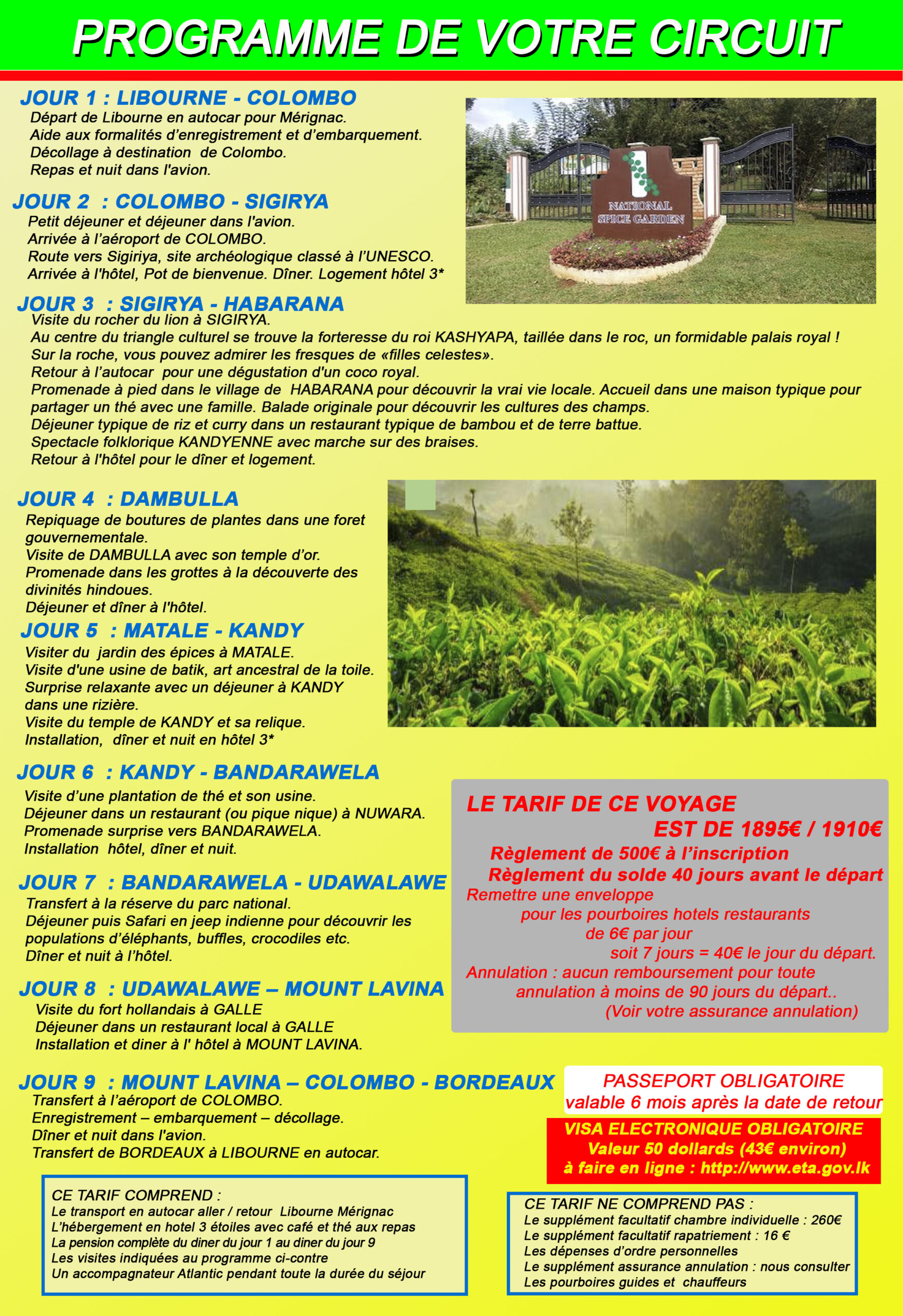 Vol direct Bordeaux/ Colombo. CEYLAN dans l’océan indien. 9 Jours. Visite d’une plantation de thé, de temples.