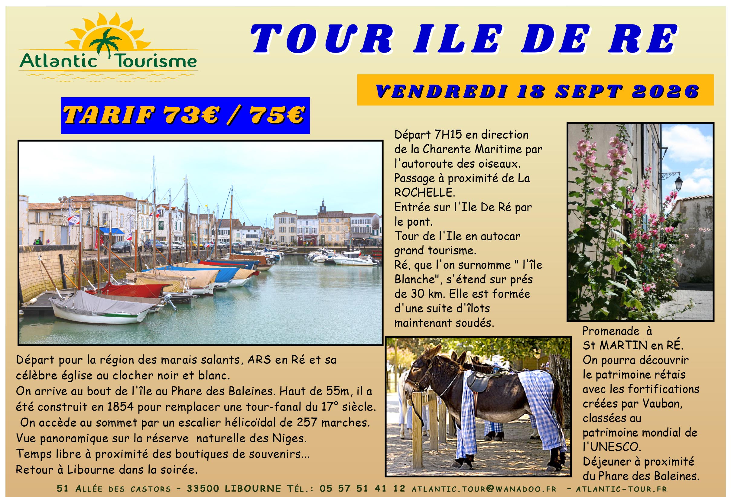 VENDREDI 18 SEPTEMBRE : TOUR DE L’ILE DE RE. Charente Maritime.