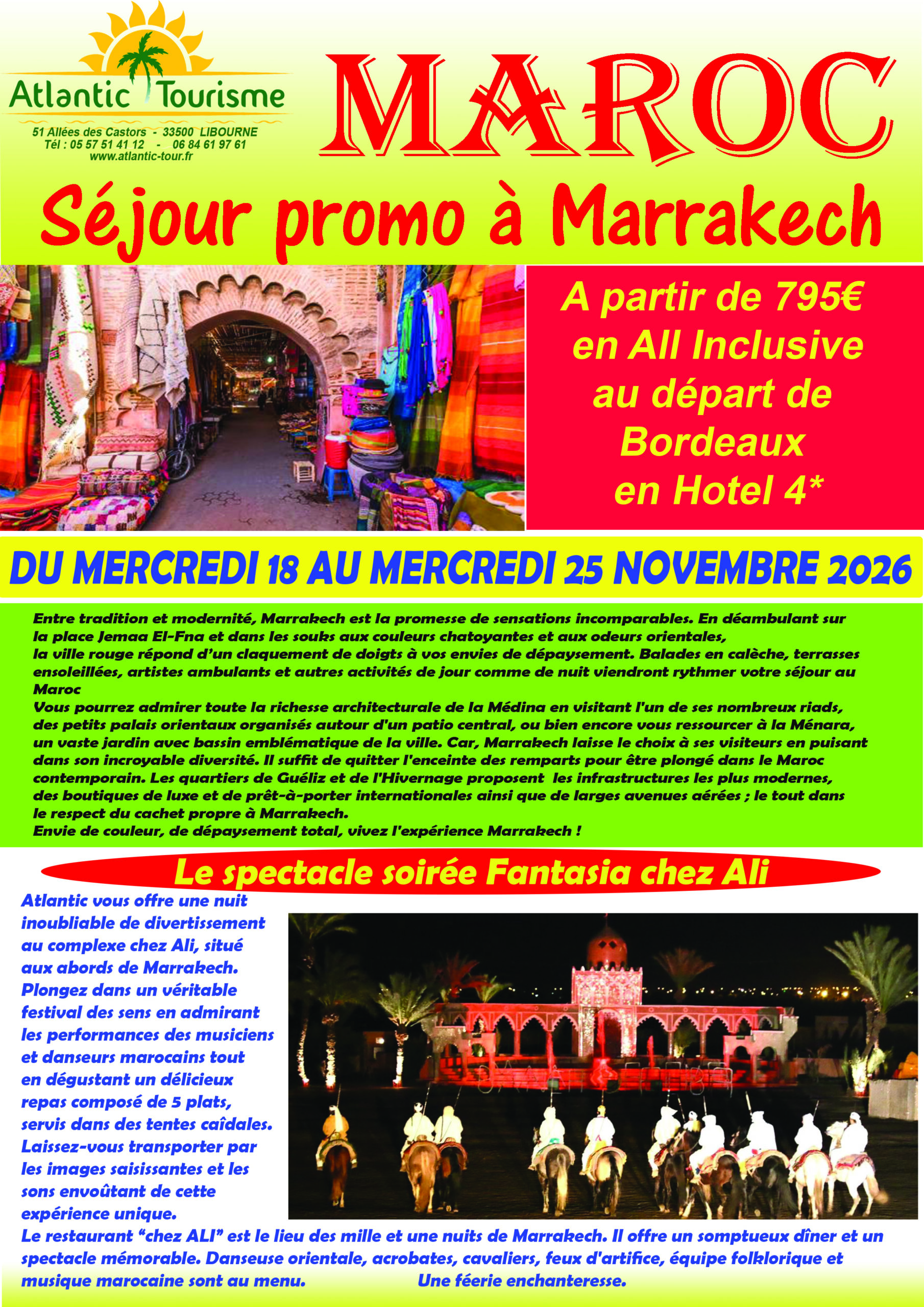Du Mercredi 18 au MERCREDI 25 NOVEMBRE : le MAROC MARRAKECH