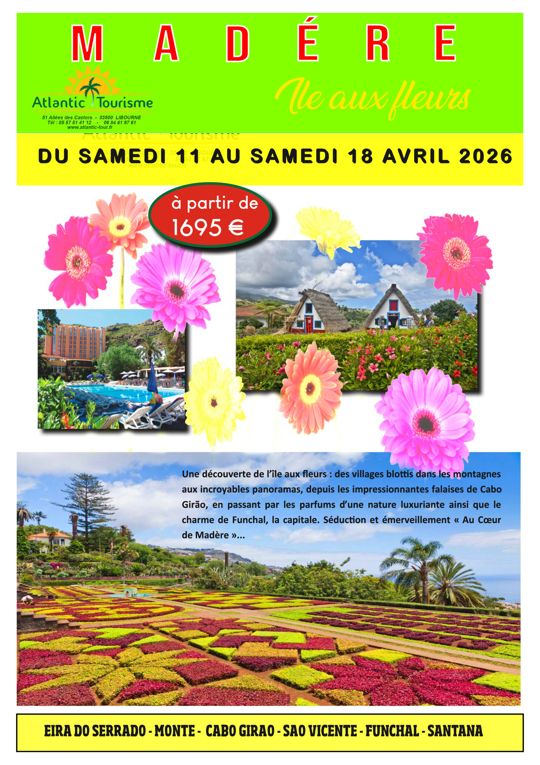 2159€/2174€. Règlement 500€ à l’inscription. Départ vol direct de Bordeaux. 10 Jours.