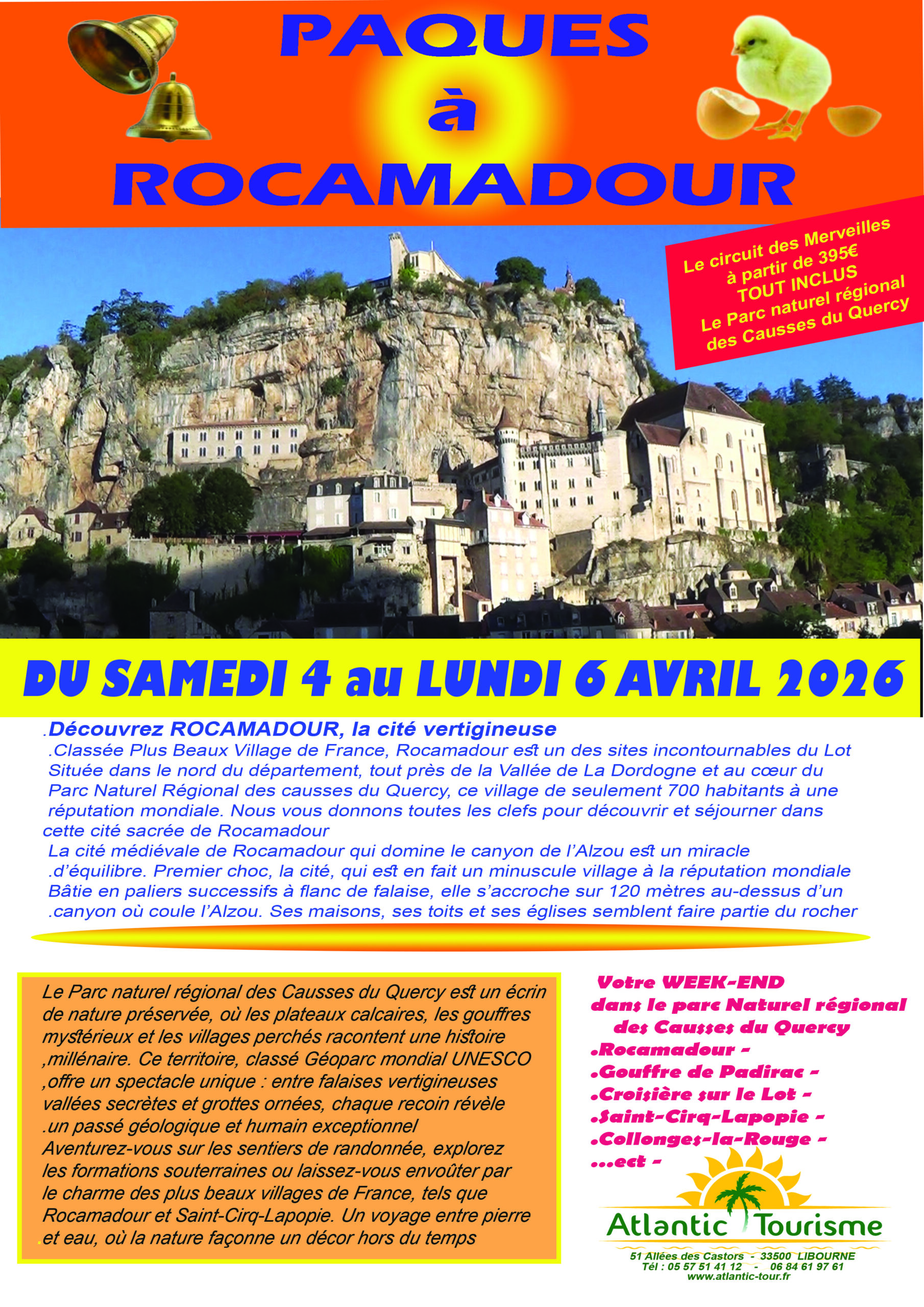 Du SAMEDI 4 au LUNDI 6 AVRIL : PAQUES à ROCAMADOUR dans le LOT