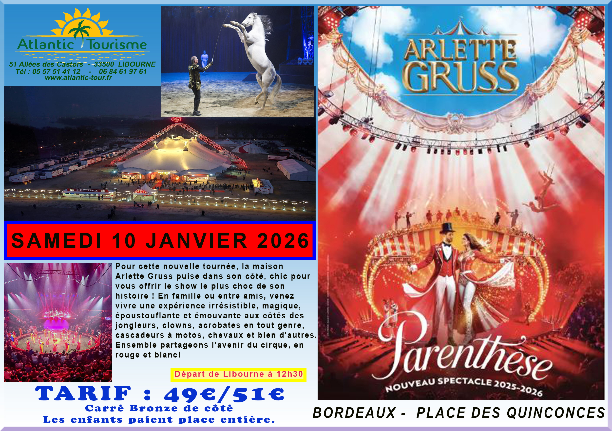 SAMEDI 10 JANVIER : CIRQUE Arlette GRUSS – Les Quinconces à Bordeaux