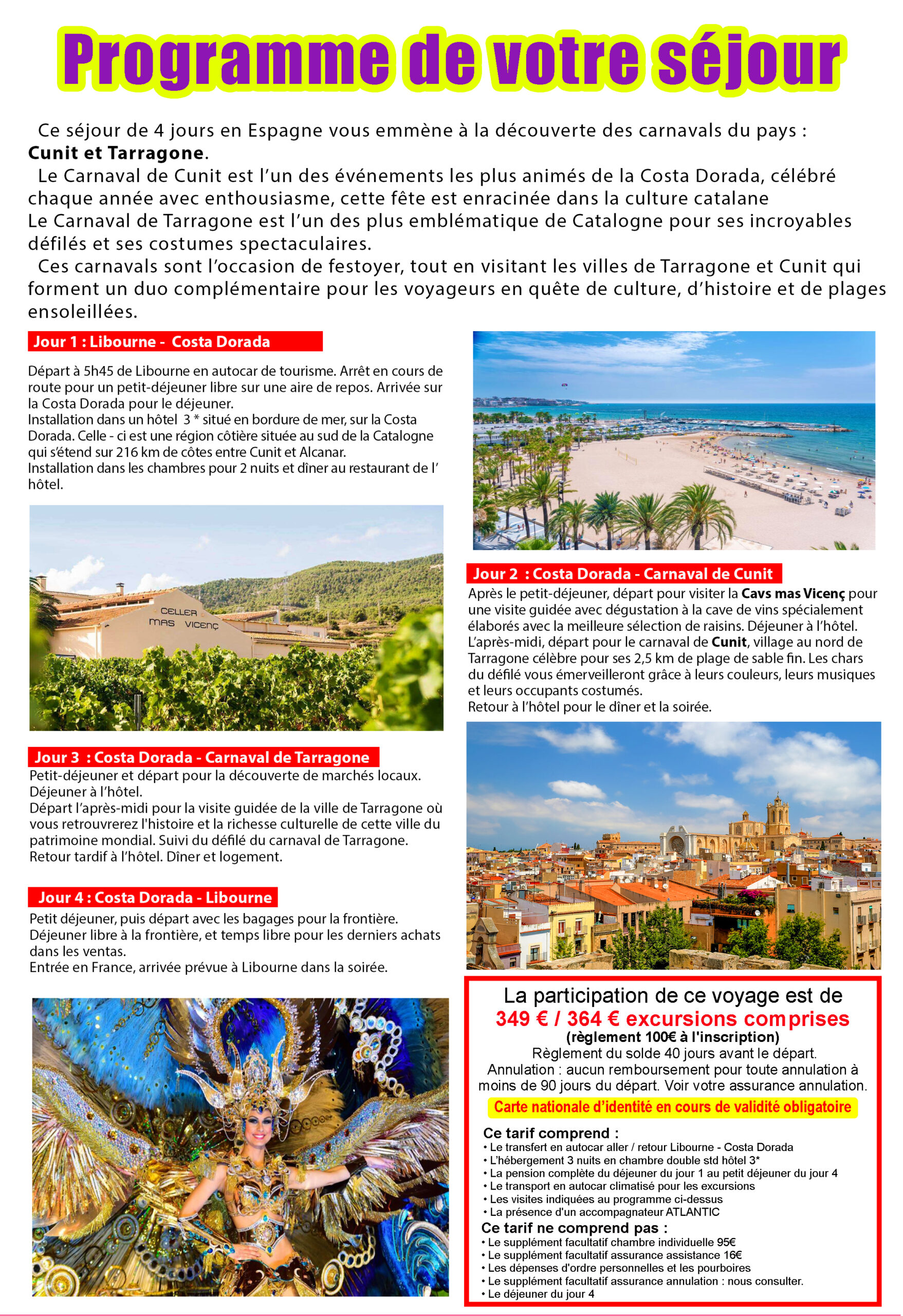 3 CARNAVALS INCLUS DANS LE VOYAGE : VENDRELL, CUNIT et TARRAGONE