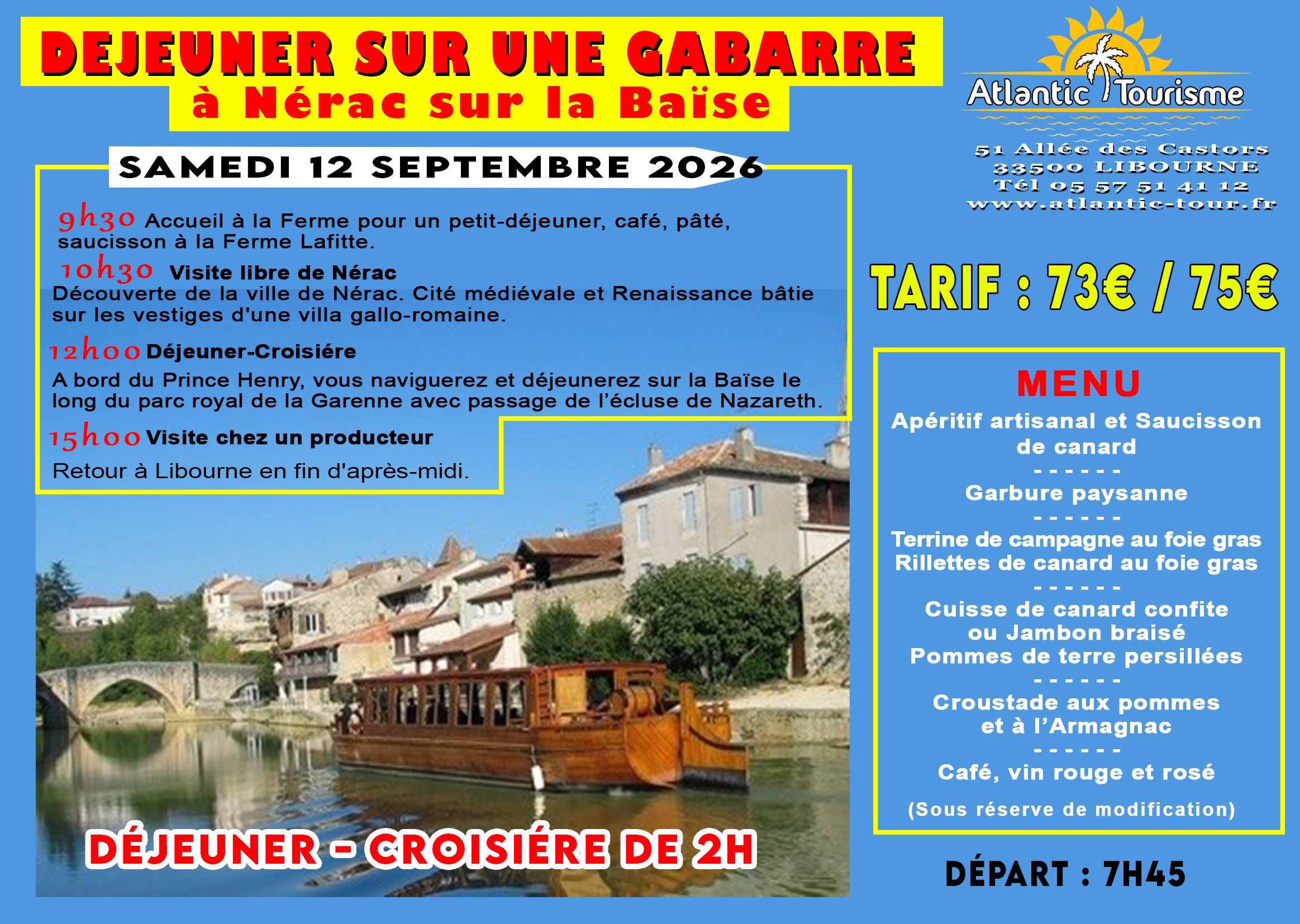 SAMEDI 12 SEPT : DEJEUNER SUR LA GABARRE à NERAC Lot et Gar