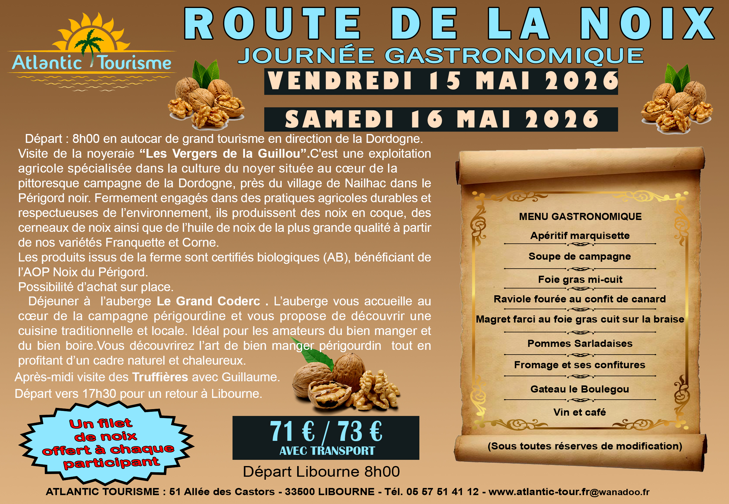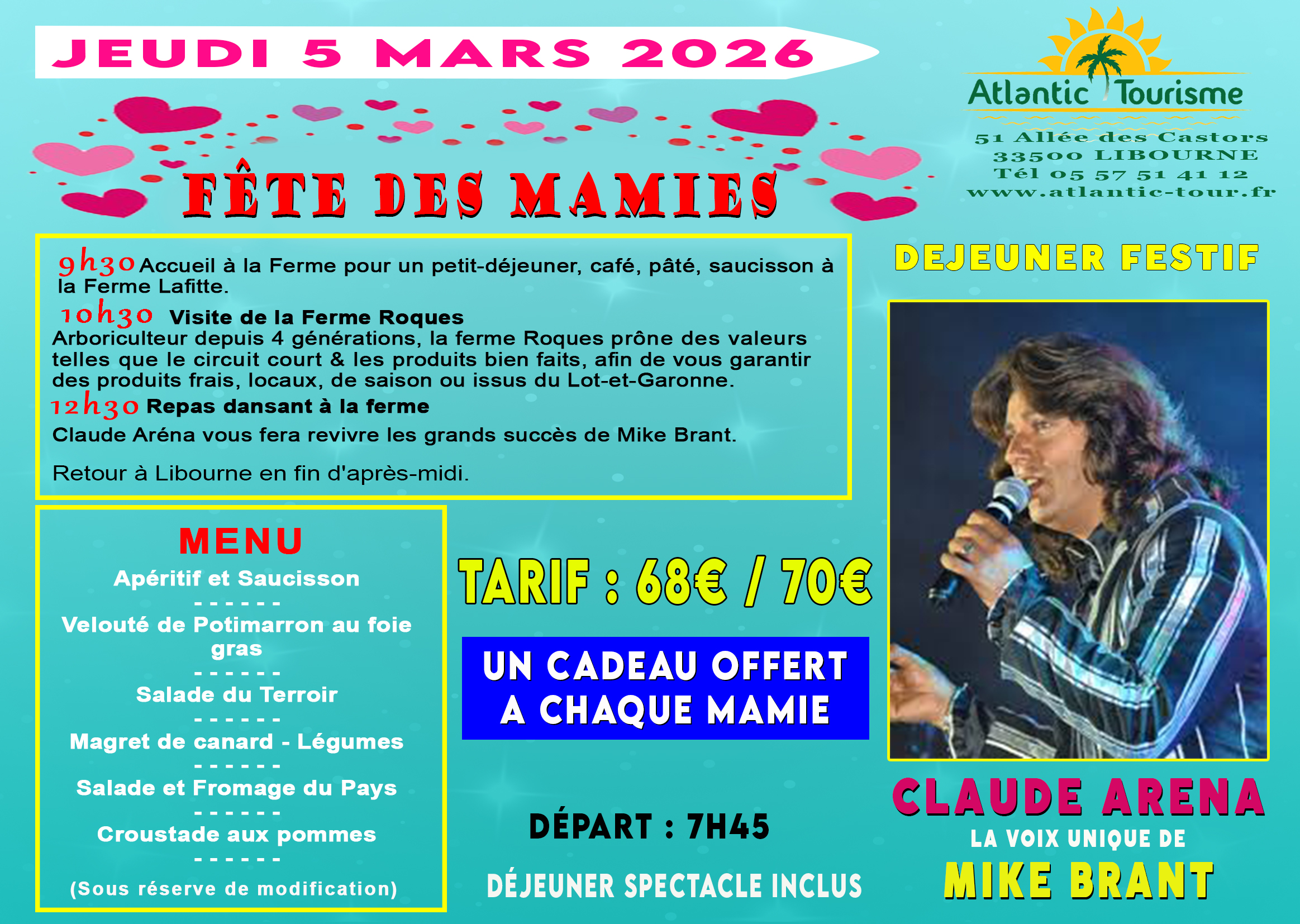 68€/70€. Départ : 7h45. Un cadeau sera offert à chaque mamies !!!