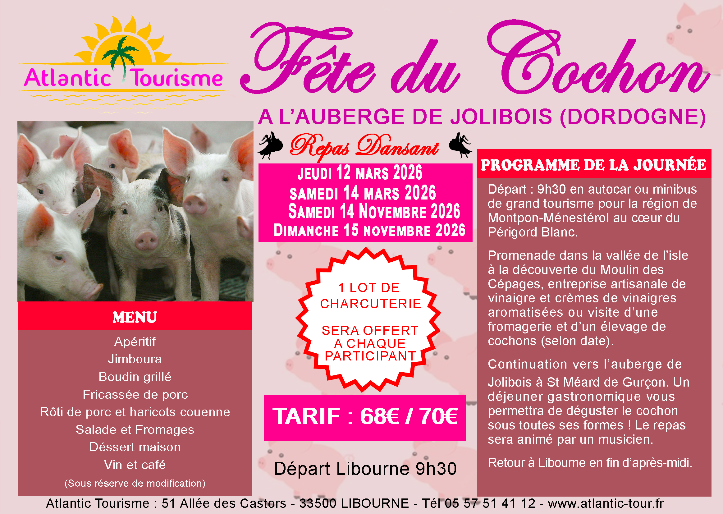 JEUDI 12 MARS : FETE du COCHON à JOLIBOIS. Déjeuner dansant