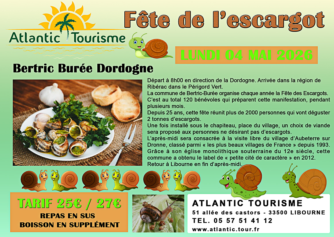 59€/61€. Départ : 8h30. Explication du travail d’un Gemmeur, déjeuner gourmand, après midi loto GRATUITE