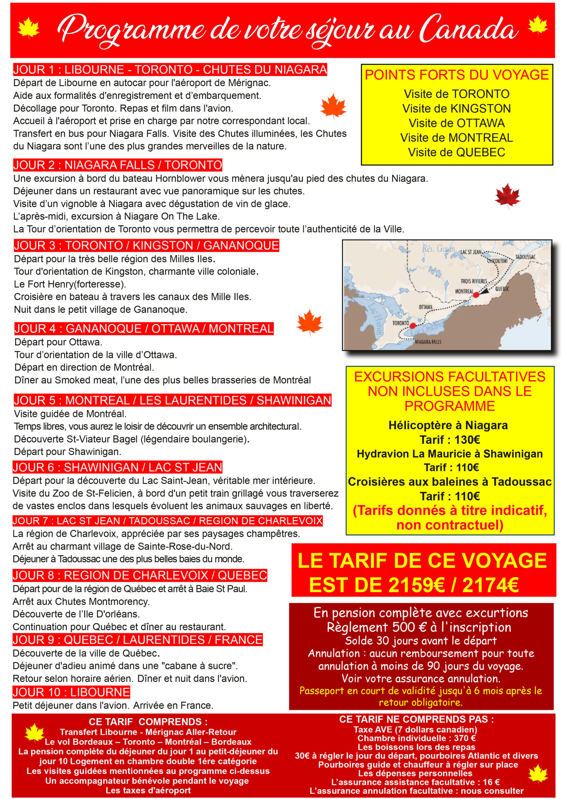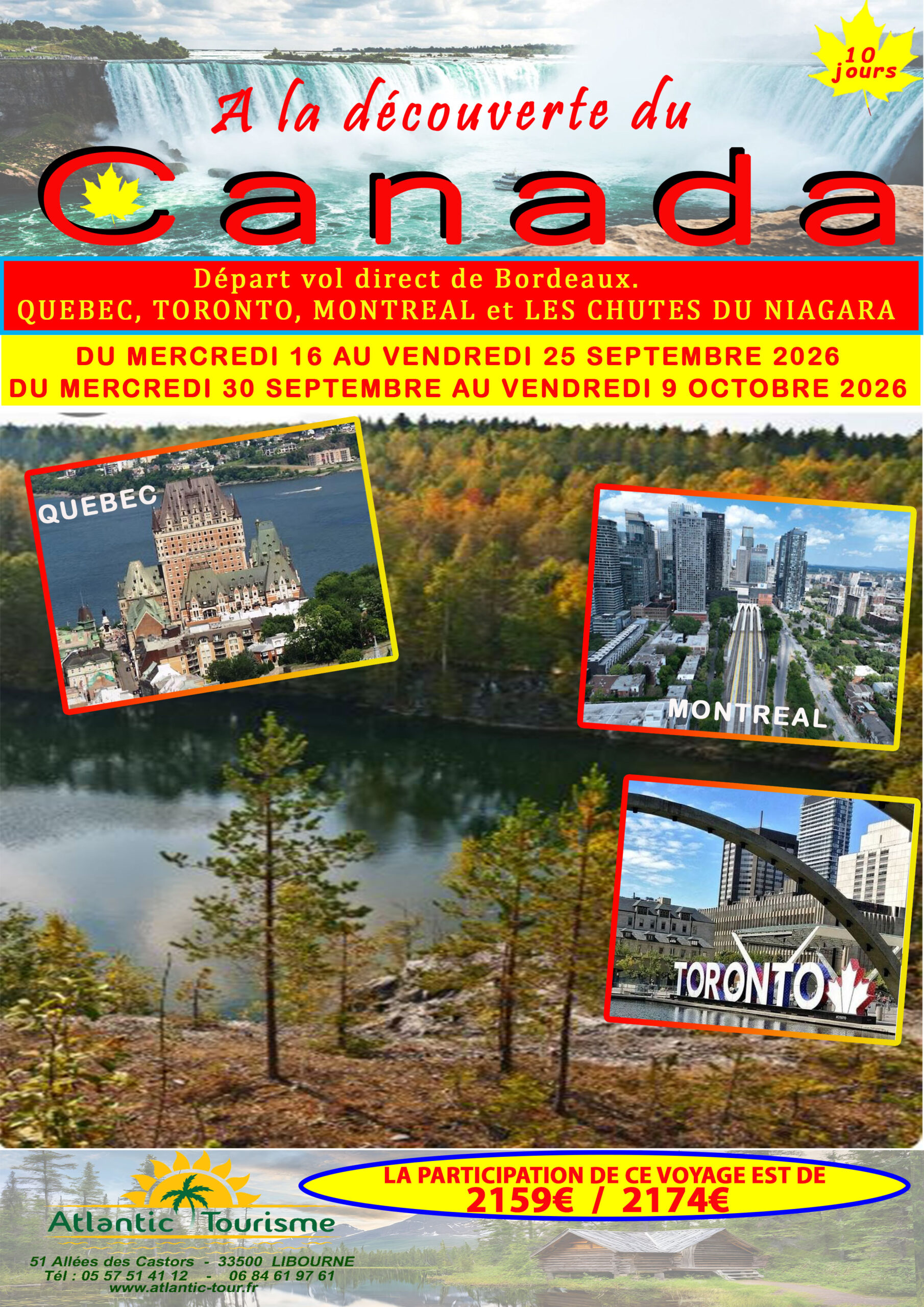 QUEBEC, TORONTO, MONTREAL et LES CHUTES DU NIAGARA ….