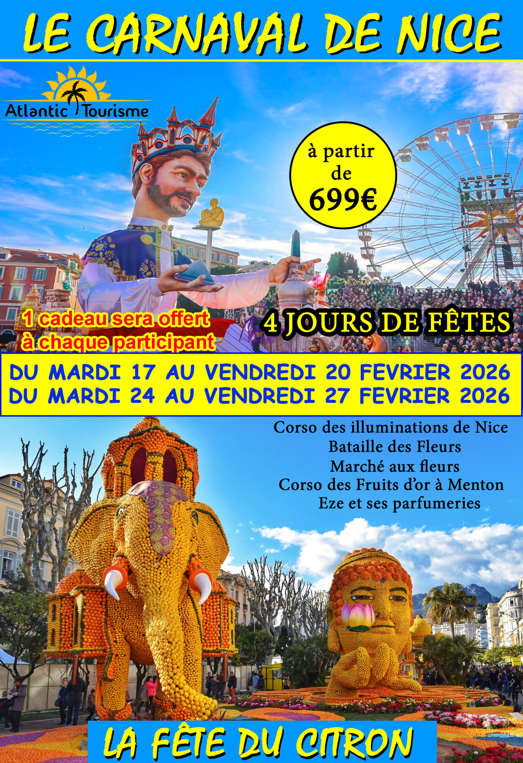 Du MARDI 17 au VENDREDI 20 FEV : LE CARNAVAL de NICE MENTON