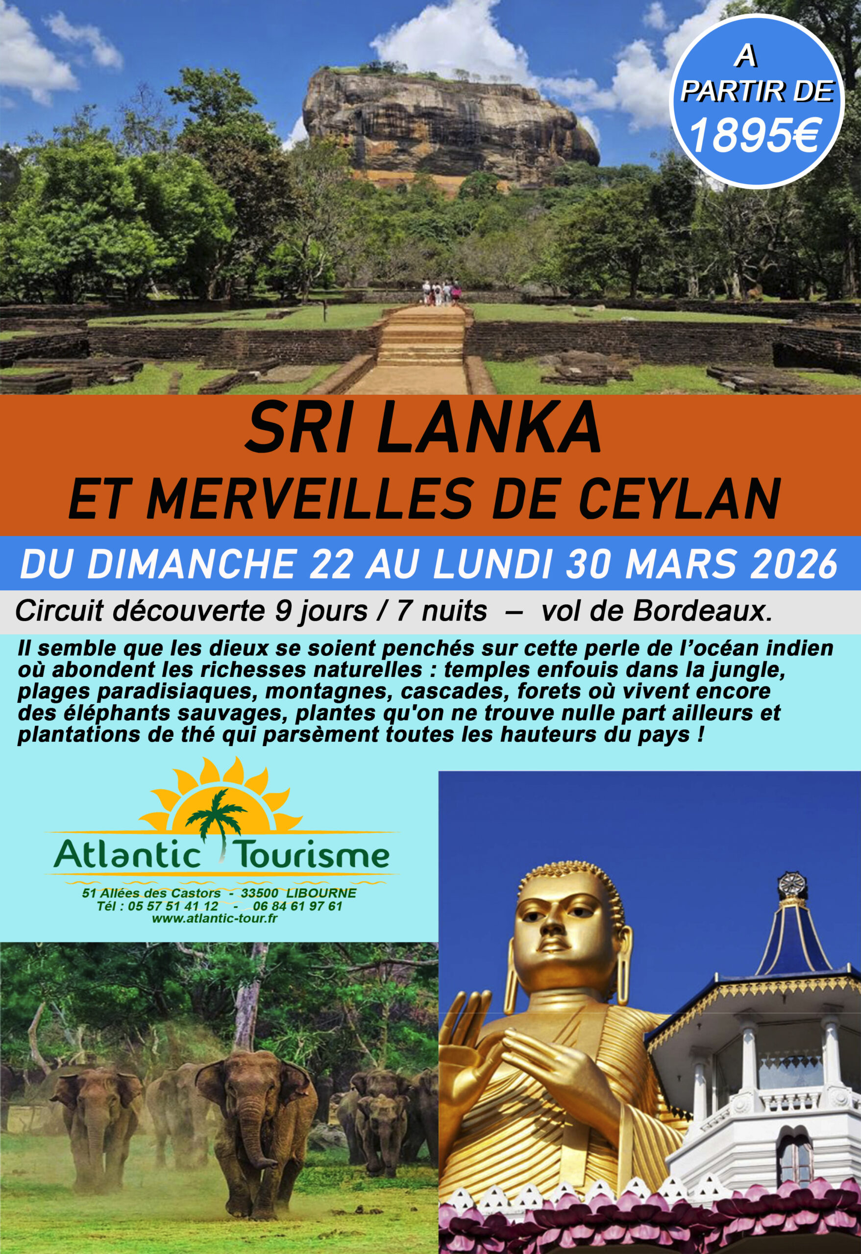 Du DIMANCHE 22 au LUNDI 30 MARS : les MERVEILLES du SRI LANKA