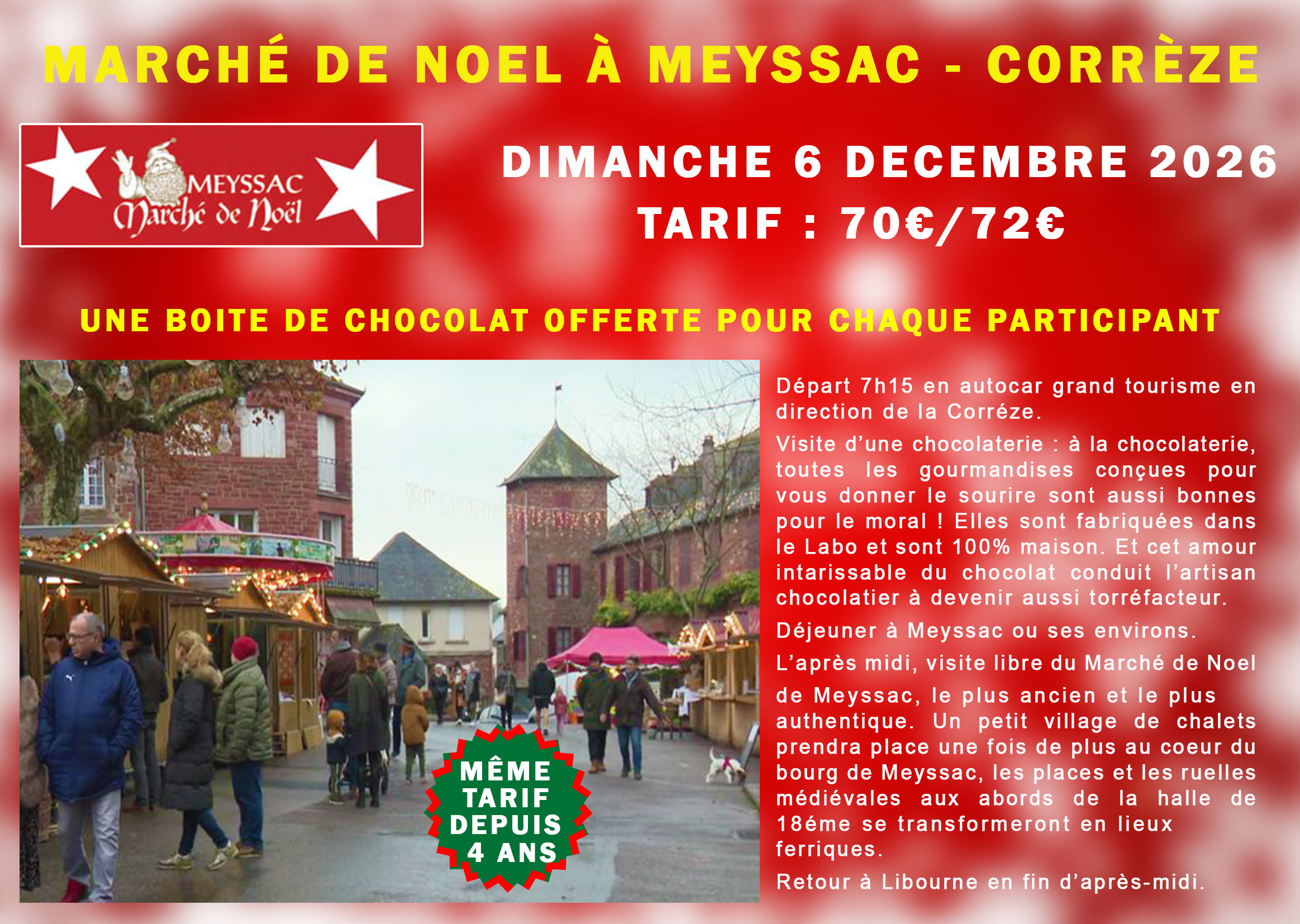 DIMANCHE 6 DECEMBRE : MARCHE de NOEL à MEYSSAC en Corrèze